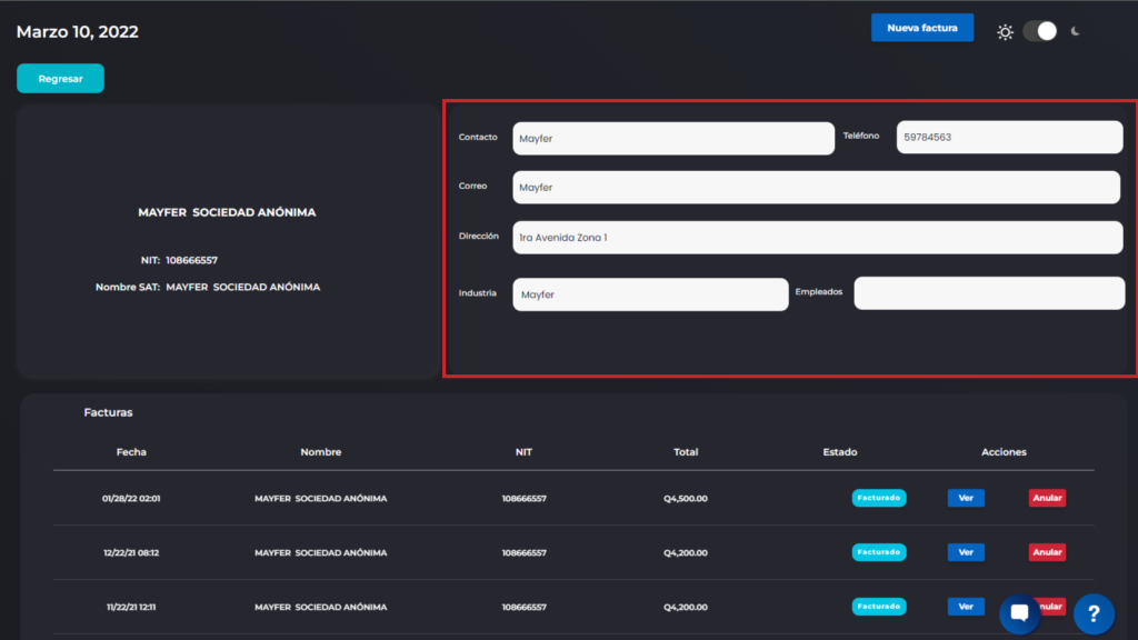 2) En sección de información podremos editar o ingresar la información del cliente y esta se guardará automáticamente