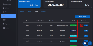 • El primer estado de una carga masiva es cargadas: es cuando se realiza la importacion de las facturas y estan en proceso de terminar de subirse