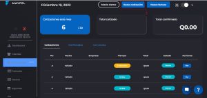- para crear una nueva cotización dirígete a la parte superior de la pantalla y haz click en el botón «Nueva Cotización»