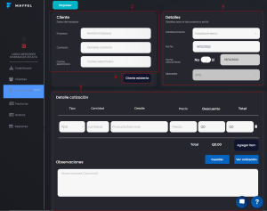 2. Llena los campos de Cliente cuando quieras agregar una cotización de un nuevo cliente automáticamente se guardara el nuevo cliente.