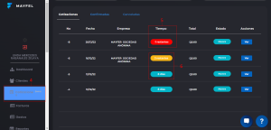 5. En la columna tiempo podrás ver el tiempo que se paso de la fecha de vencimiento de la cotización